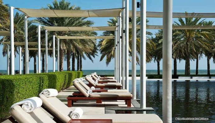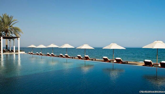 Die ausserordentliche und dennoch zentrale Lage spricht sowohl Freizeit- als auch Geschäftsreisende an, während sechs verschiedene Restaurants, ein 13 Suite-Spa, drei Swimming-Pools, einschliesslich dem 103 Meter Long Pool, 700 m2 Health Club und zwei Executive Konferenzräume die kulturellen Attraktionen Muscats beträchtlich erweitern.