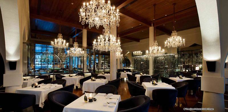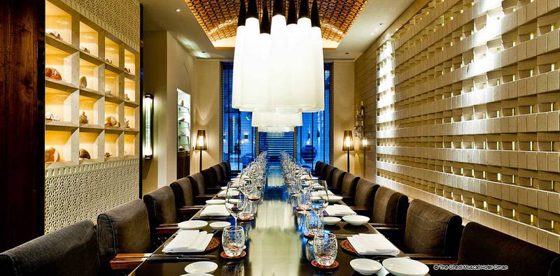 Sechs Restaurants und zwei Lounges im Chedi Muscat decken die kulinarischen Genüsse und Weine der Welt ab, vom Mittelmeerraum und dem Nahen Osten, bis nach Südostasien und Indien. Stilvoll eingerichtet vom renommierten japanischen Innenarchitekten, Yasuhiro Koichi vom Design Studio SPIN, verbindet das Restaurant klares asiatisches Interieur mit charakteristischen Details der omanischen Architektur.